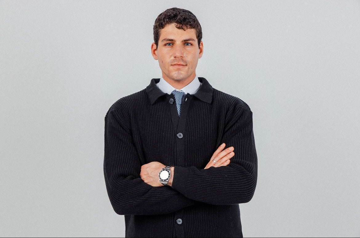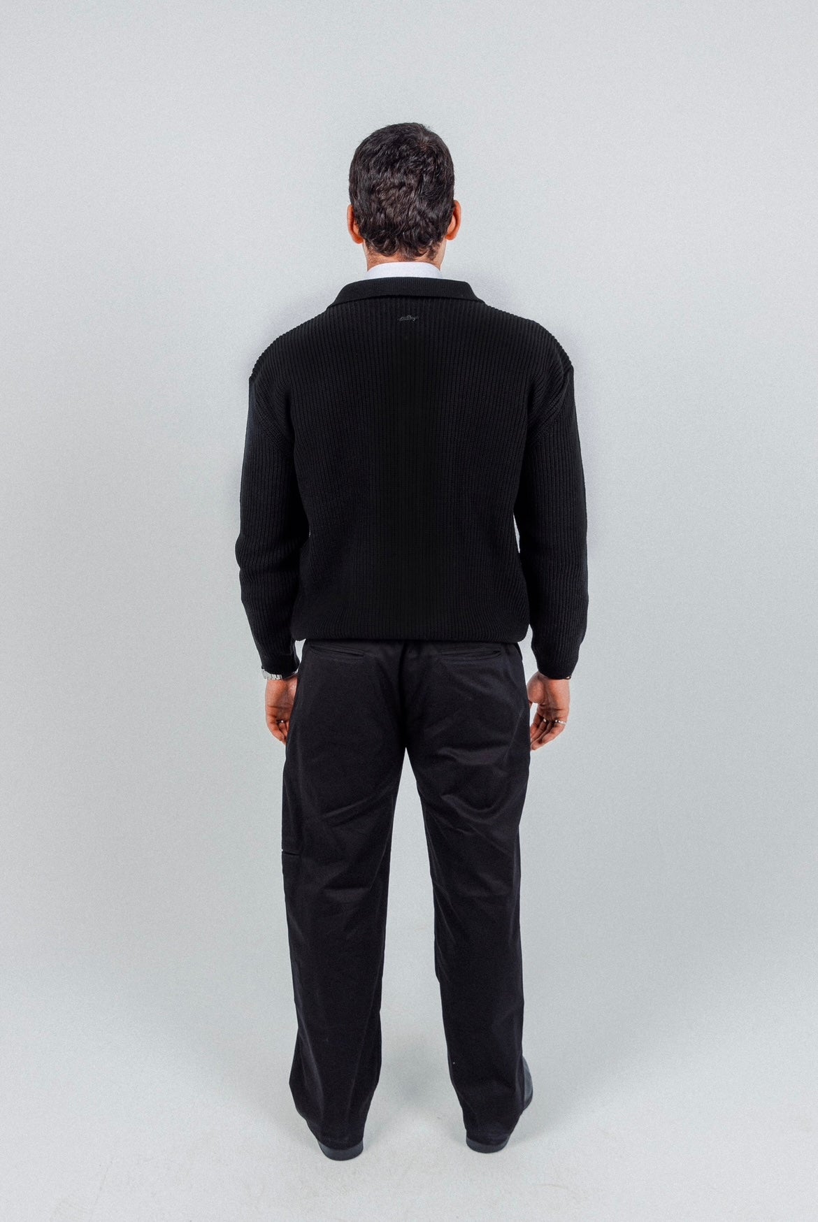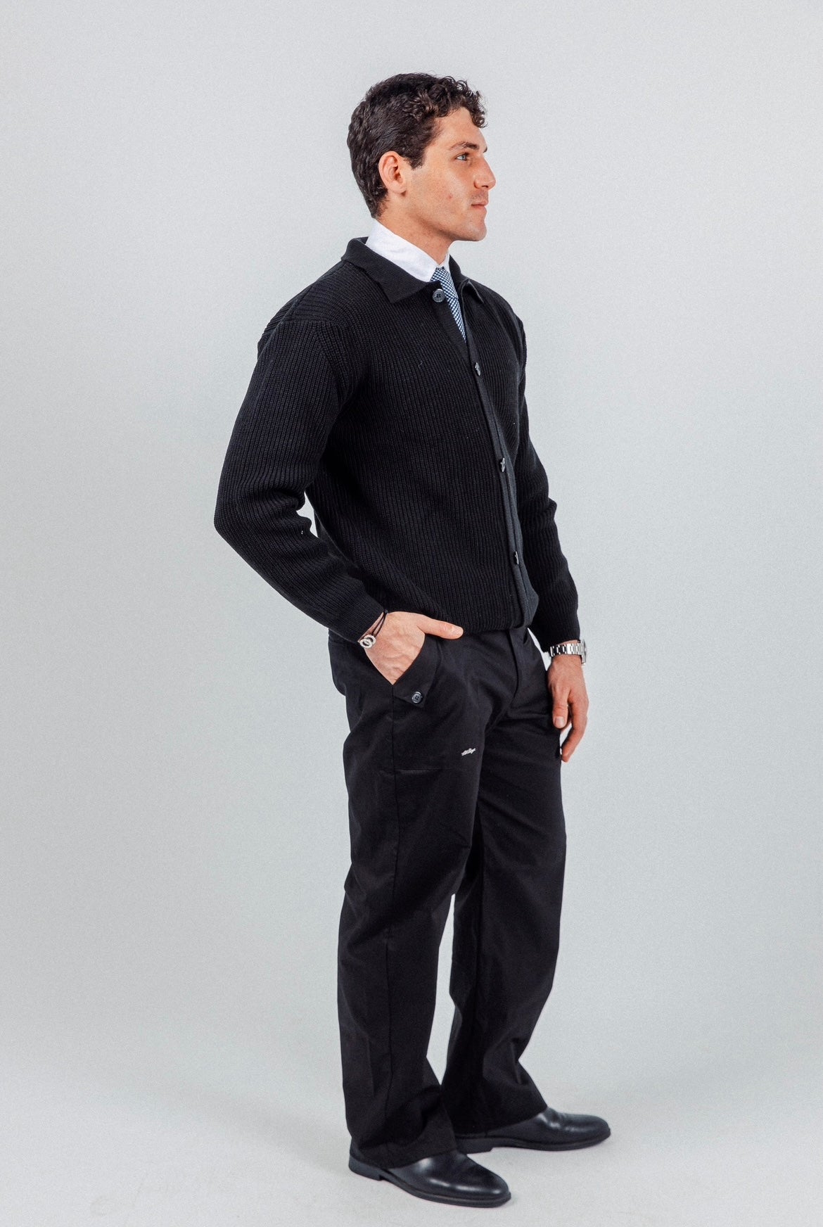 Regular fit cardigan knitted in wool yarn. Lapel collar and long sleeves. Ribbed trims. Button fastening at the front.